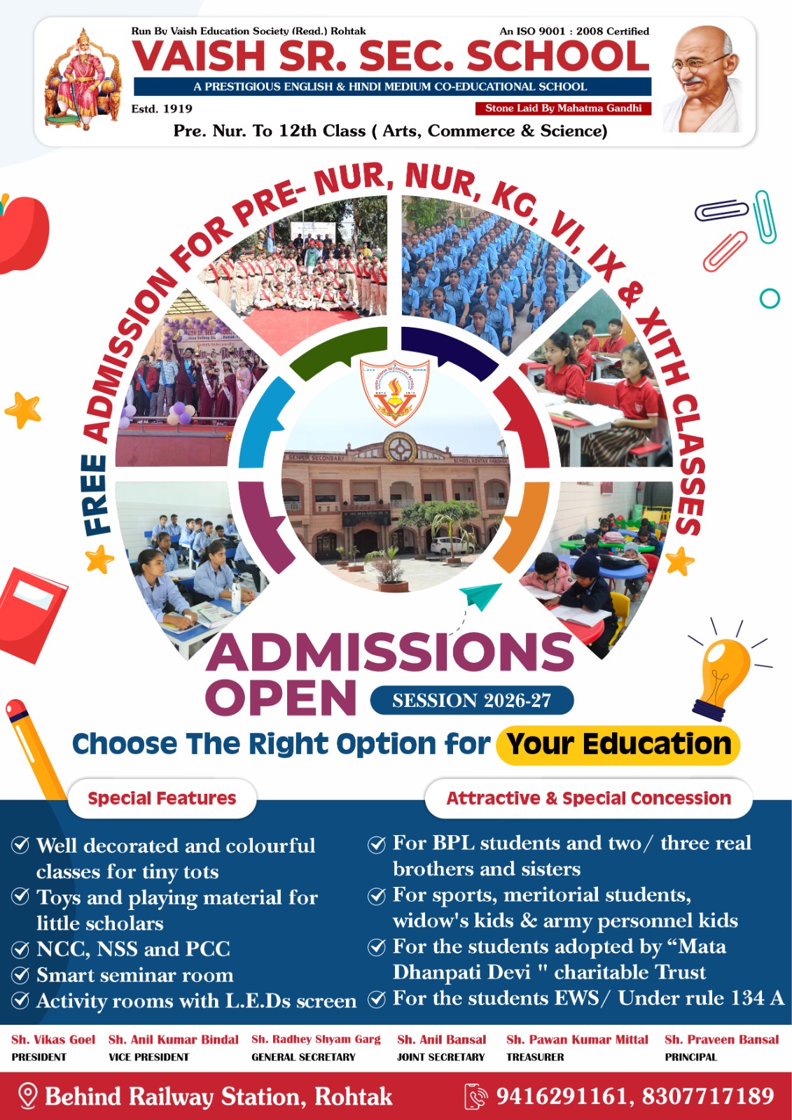 mediums of instructions: English and Hindi. The school is run by Vaish